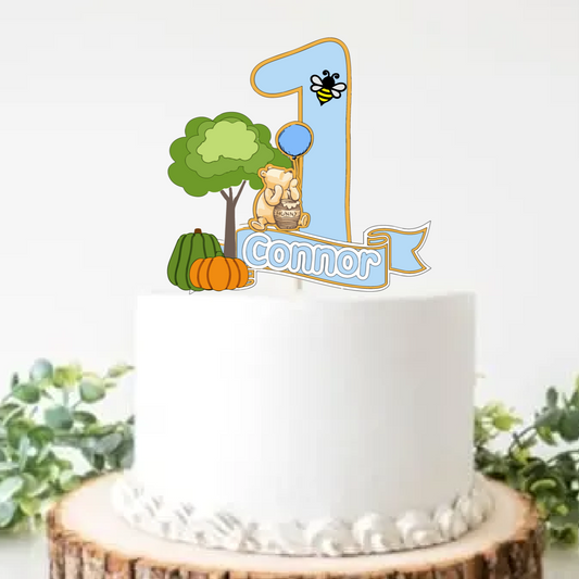 Pumpkin Fall Autumn Pooh Blue and Gold Cake Topper
