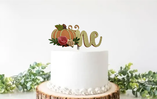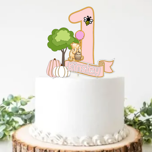 Pumpkin Fall Autumn Pooh Pink and Gold Cake Topper