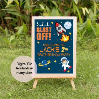 Astronaut Birthday Welcome Sign to place on a mini table easel, in a photo frame, in an easel, or on a wall to guide guests, and add a unique touch to your special event!