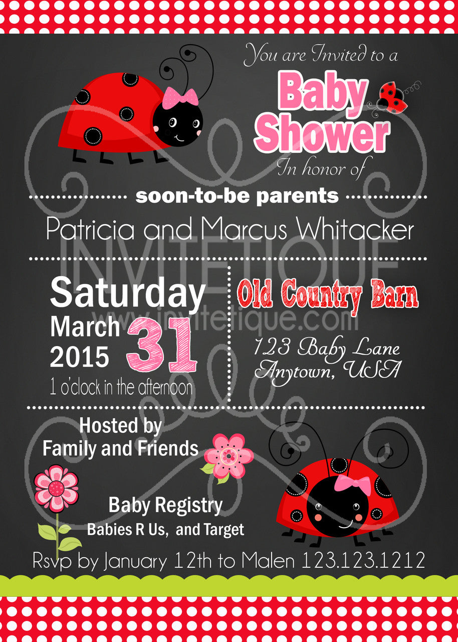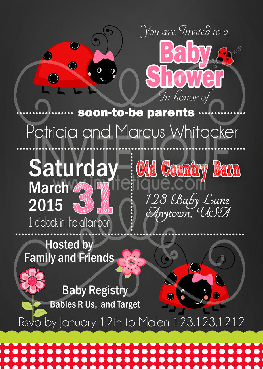 Ladybug Baby Shower Invitation, Lady Bug, Love Bug, Little Bug, Customize Printable Invitation