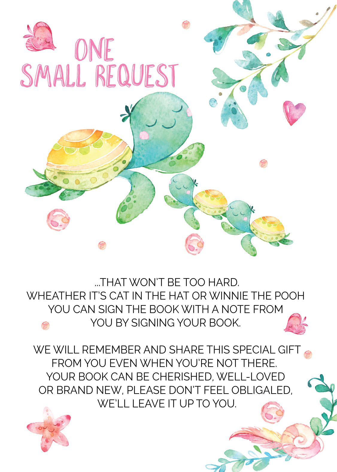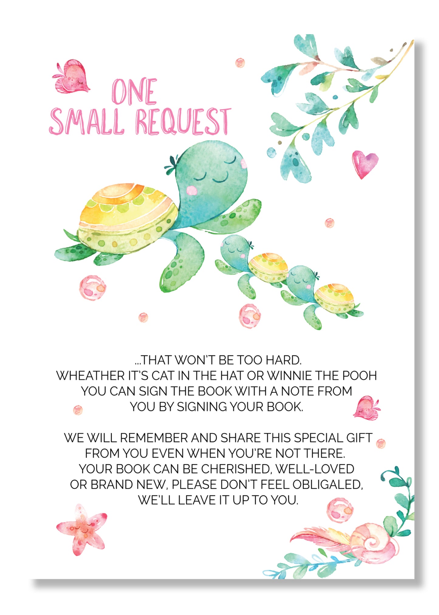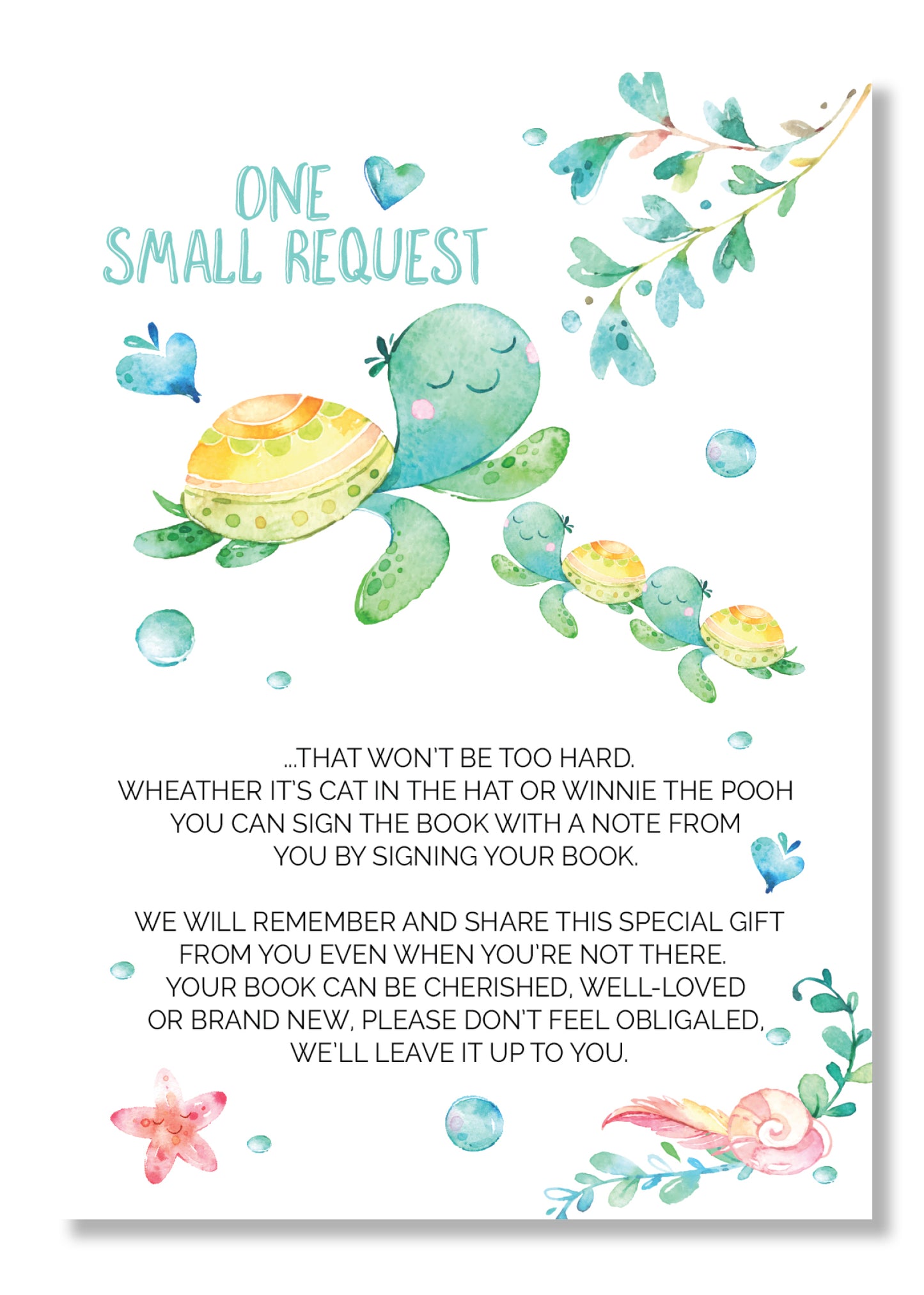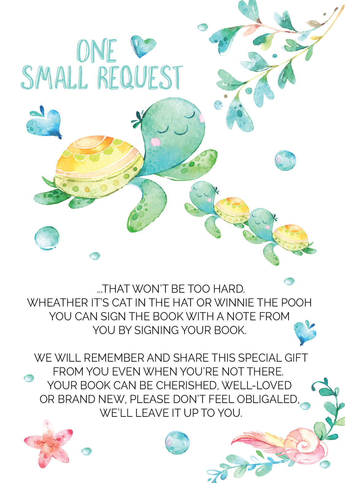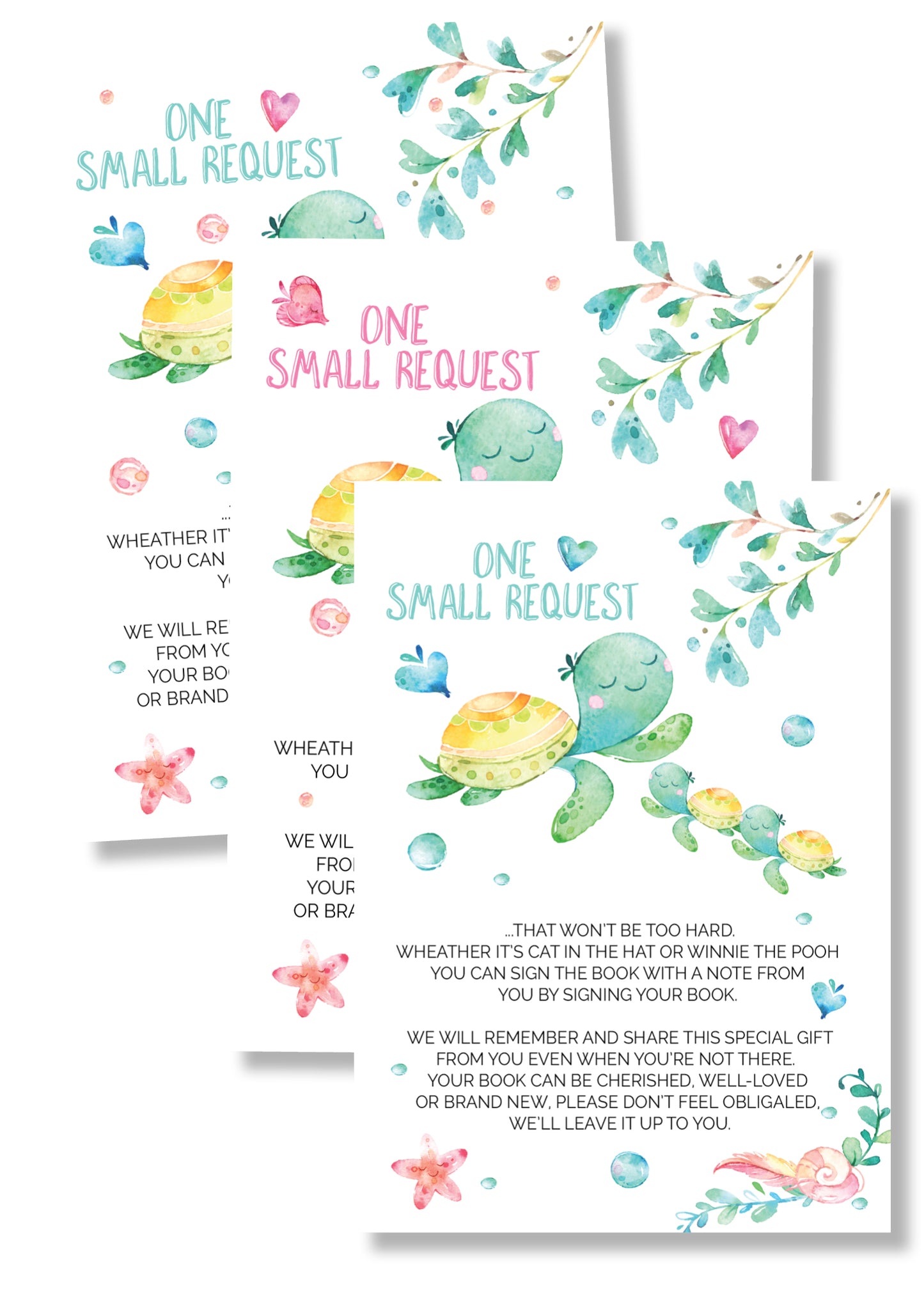 Sea Turtle twin Book request cards