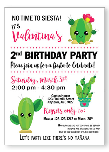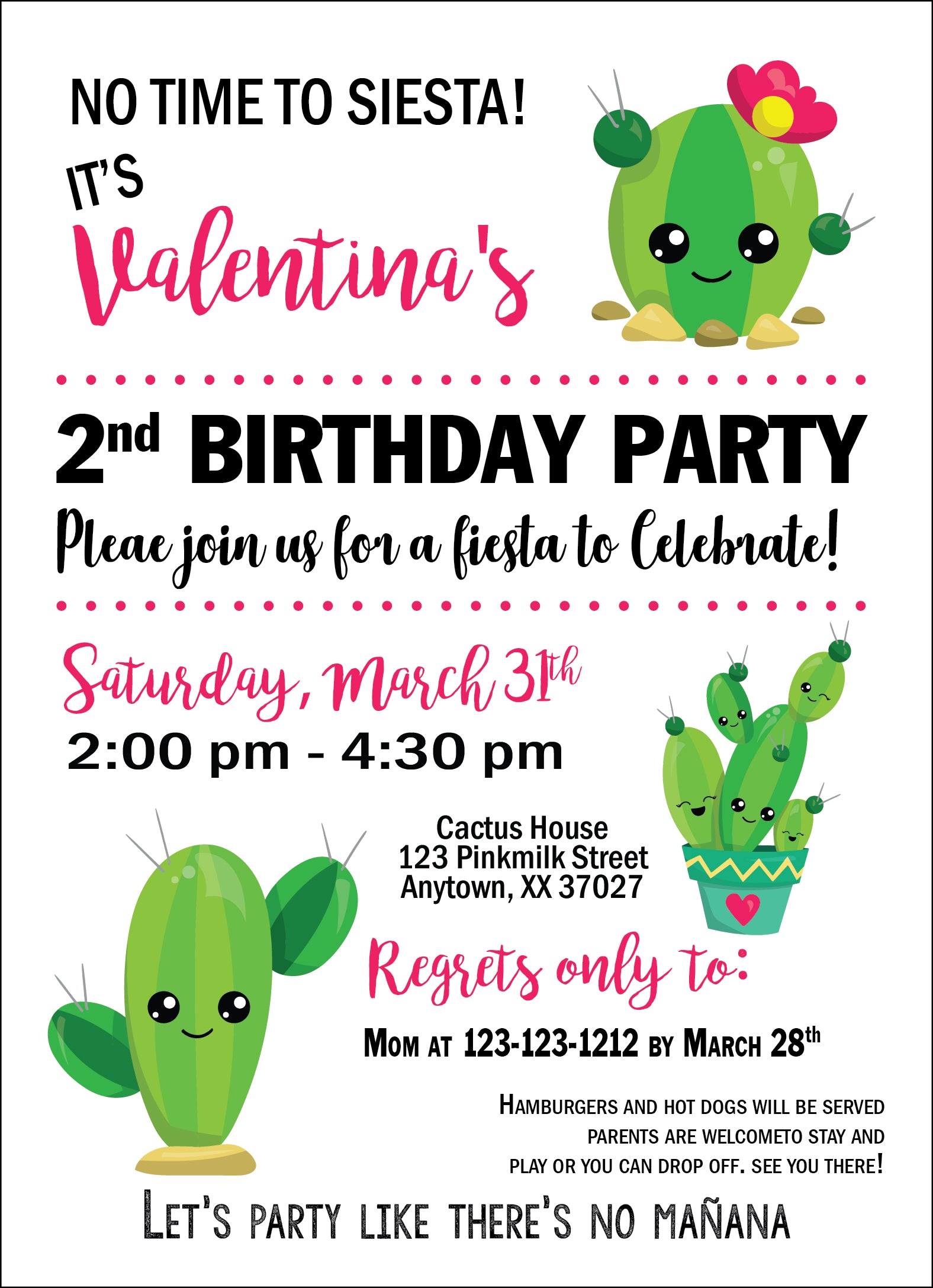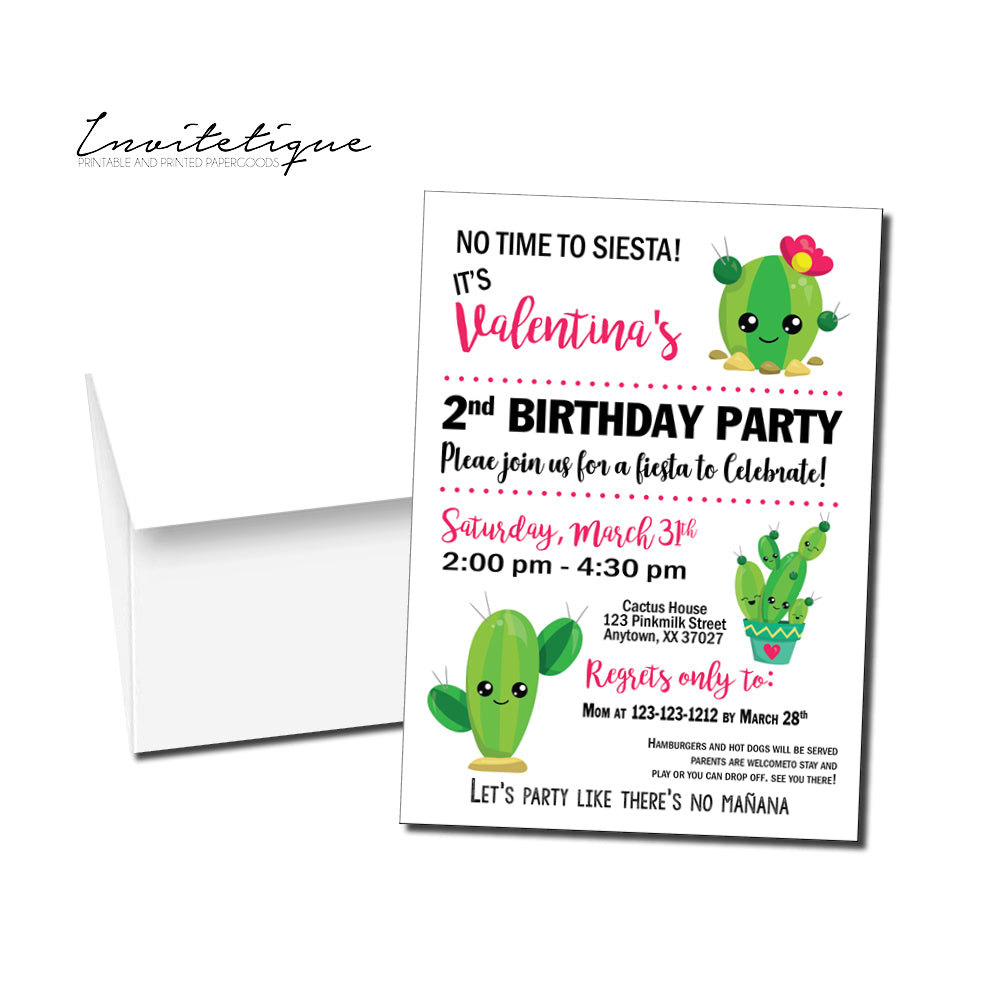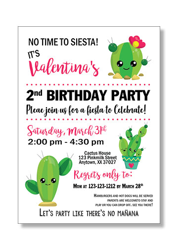 This awesome cactus-themed invitation would be great for any age! This can be customized for any event!
