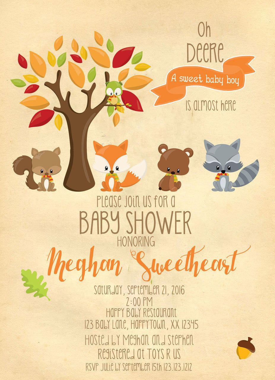 Celebrate your baby upcoming arrival with this Sweet Woodland Baby Shower Invite!