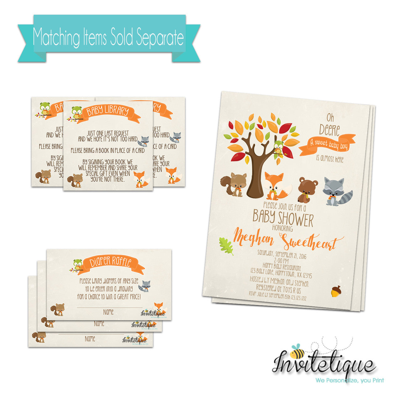 Very versatile: customize with removing any forest character, add a custom color change, and change wording to use for any occasion! Change the wording for a sweet woodland first birthday party celebration!